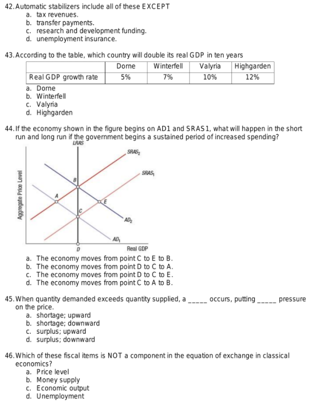 Solved 42 Automatic Stabilizers Include All Of These Except Chegg Com